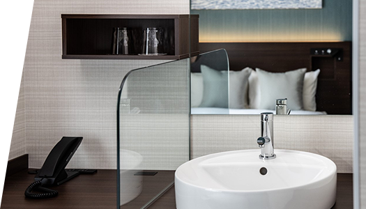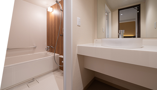 全客室に、バス・トイレ・洗面の水回りがそれぞれ独立した「3点独立型水回り」を導入。バスルームには、ゆったりした広さの洗い場も備わっております。