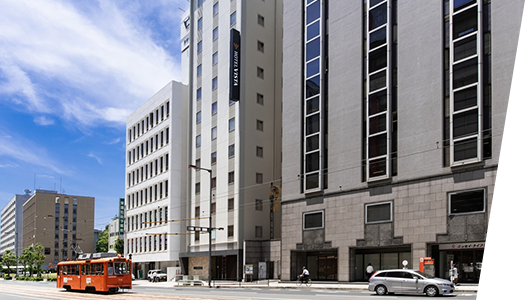 伊予電鉄「大街道」駅から徒歩2分、空港リムジンバス停の「大街道」電停からは徒歩1分の「超」好立地です。