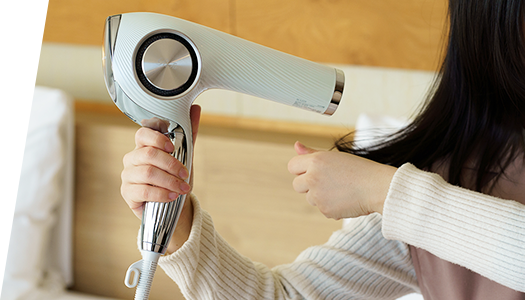 バス・トイレ・洗面が独立した「3点独立型」の水回りと、高品質な「カリモク家具」を採用した客室は、ツインルーム中心の構成で、トリプル、フォースまでご利用可能です。上位客室には、髪・肌への効果が高い「ReFa」の美容機器を設置しています。
